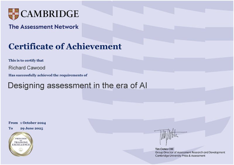 I’m pleased to share that I’ve completed and passed the Designing Assessment in the Era of AI course, offered in partnership between Zayed University and Cambridge University Press & Assessment.