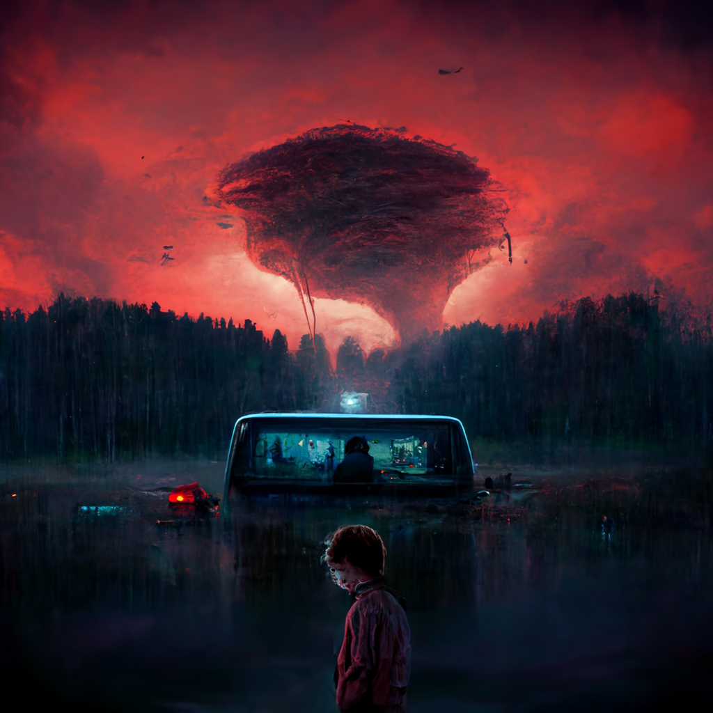 Time to find the time to get through the last 2 (movie-length) episodes of Stranger Things. In the meantime, I explored more AI generated art with Midjourney using the following prompt: /imagine stranger things in a realistic end of the world landscape like the upside down. Again, I have done nothing to the images other than set them to music. It is astonishing what this tool is capable of even in its infancy.
